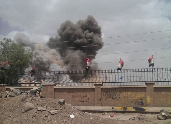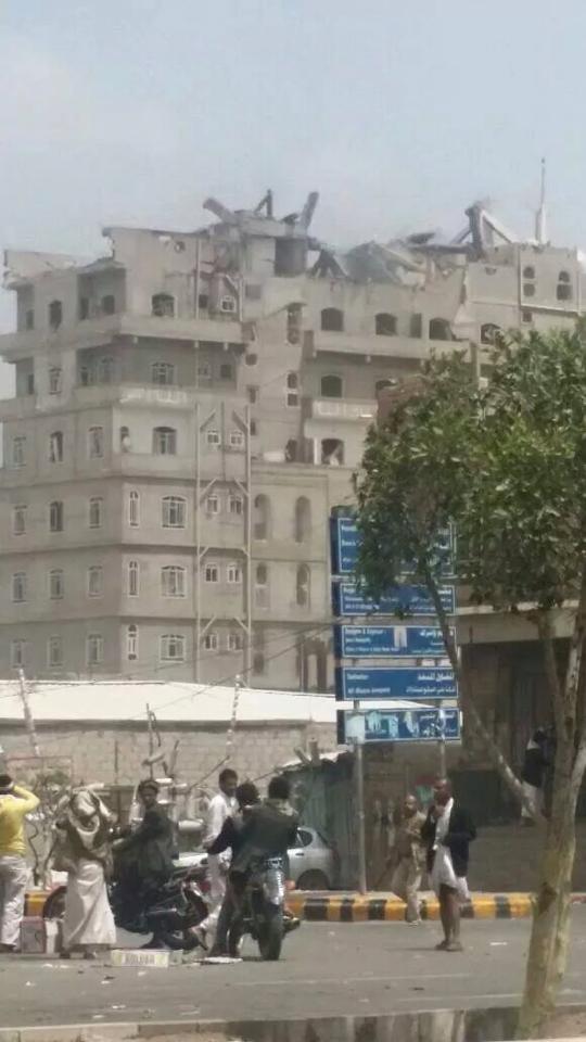 استهدف طيران التحالف ظهر اليوم الأربعاء 8 ابريل 2015 عمارة كبيرة أمام حديقة الثورة بأمانة العاصمة...