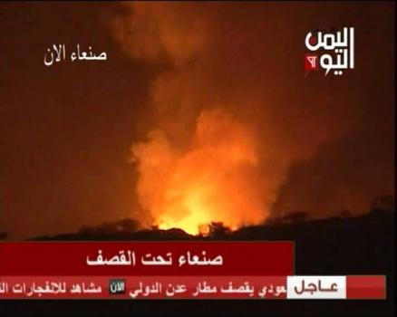 قصف طيران التحالف الذي تقوده المملكه العربية السعودية فجر اليوم تجمعات للحوثيين في منطقة يريم وفي الطريق الرئيسي المؤدي إلى العاصمة...