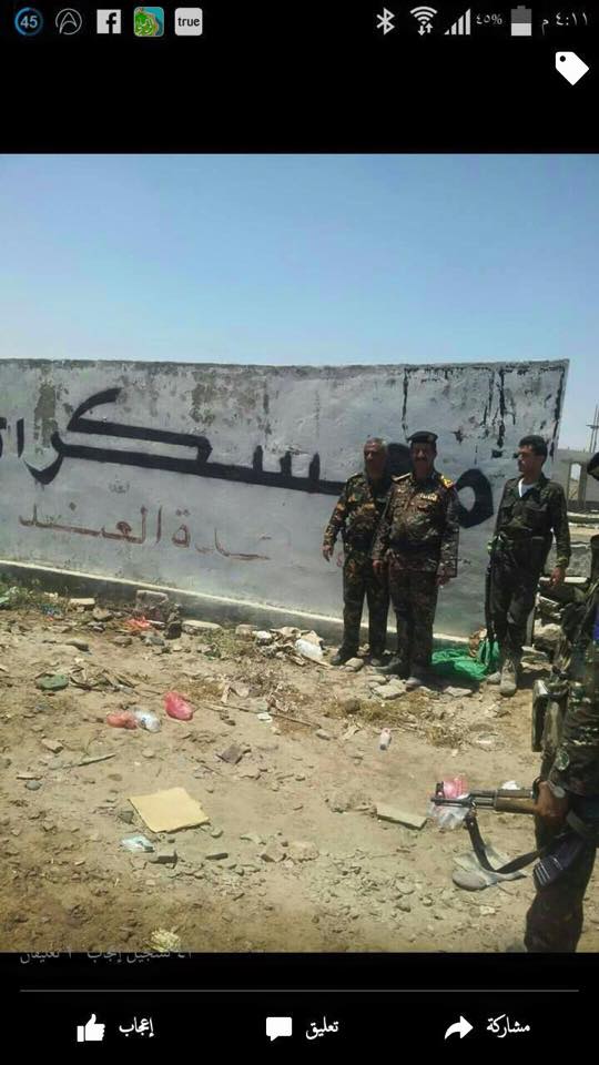 صورة الحارثي التي أضهرته مستعرضاً هي داخل قاعدة العند بعد السيطرة عليها من قبل القوة التي كان يقودها....