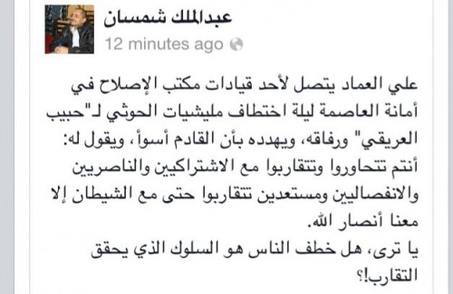 كشف مصدر بحزب التجمع اليمني للاصلاح عن تلقي قيادات حزبية تهديدات مسبقة باعتقالهم وتوعدات بأن القادم...