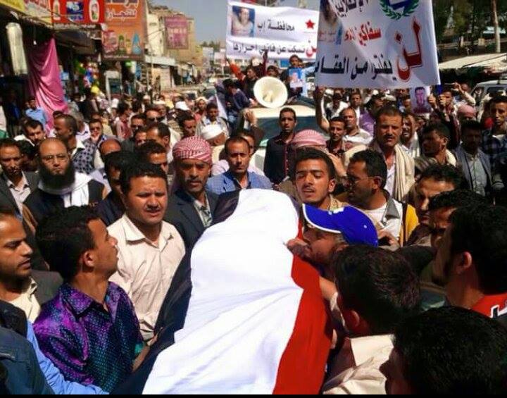 شيع الآلاف من أبناء محافظة إب جثمان الشهيد نصر فارس الشجاع بموكب جنائزي انطلق من ساحة خليح الحرية بمدينة...