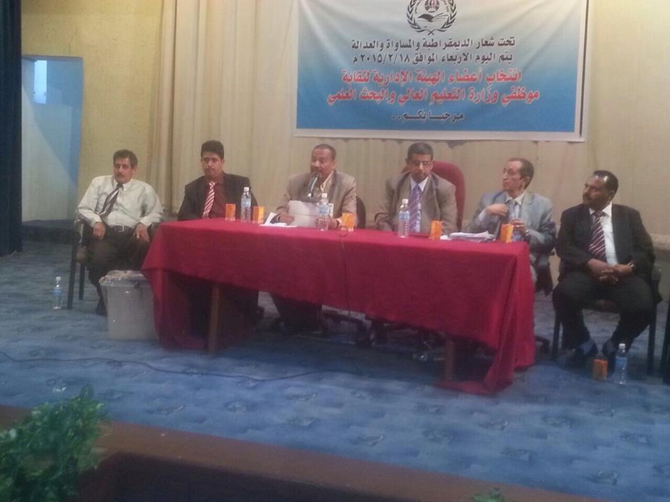 انتخب موظفو وزارة التعليم العالي والبحث العلمي اليوم بصنعاء هيئة إدارية لنقابة موظفي الوزارة مكونة من سبعة اعضاء بحضور ممثلين عن الإتحاد العام للنقابات ووزارة الشؤون الإجتماعية...