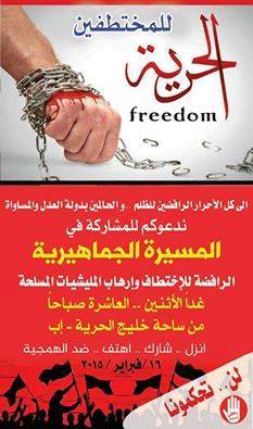 دعت حركة رفض الشبابية الى تظاهرة غداً الإثنين تنطلق من خليج الحرية بإب رفضاً للإختطافات وإرهاب المليشيات المسلحة...