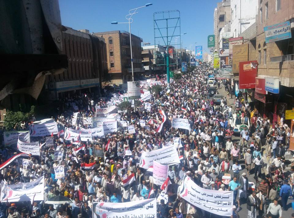 شهدت محافظة اب اليمنية صباح اليوم تظاهرة حاشدة جابت عدة شوارع في المحافظة وكانت شعاراتها ( يا حوثي برع برع ... إب الحرة لن تركع )...
