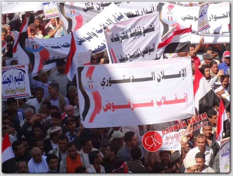 أحتشدت اليوم جماهير محافظة تعز في مظاهرة بمناسبة الذكرى الرابعة لثورة الشباب السلمية11...