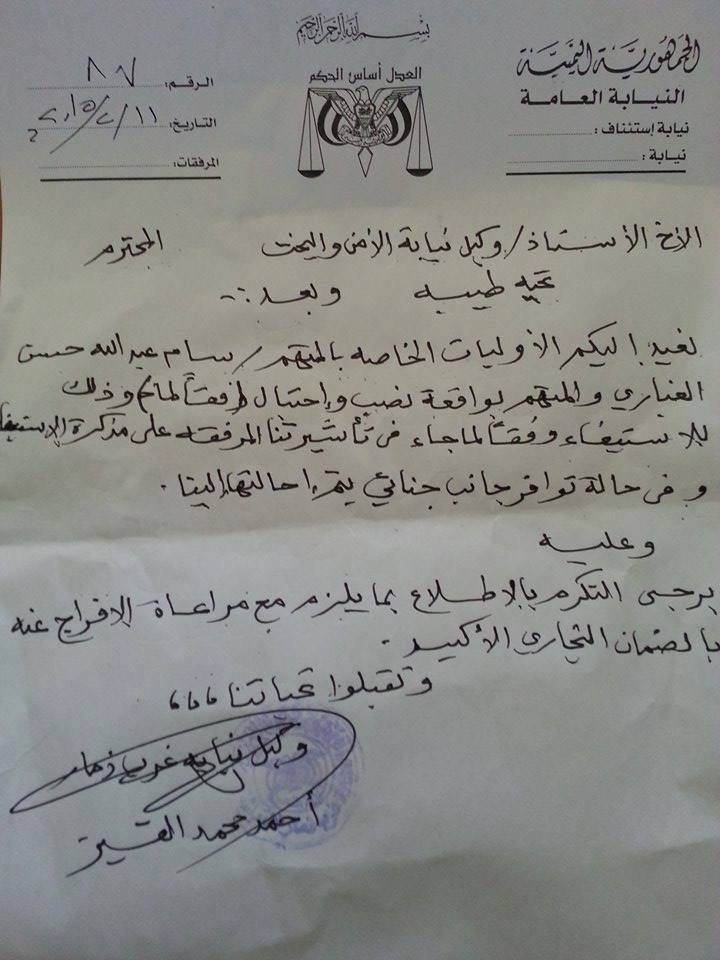 لليوم الثالثعلى التوالي والصحفي الغباري لا زال يقبع داخل سجن البحث الجنائي بمحافظة ذمار بدون تهمة...