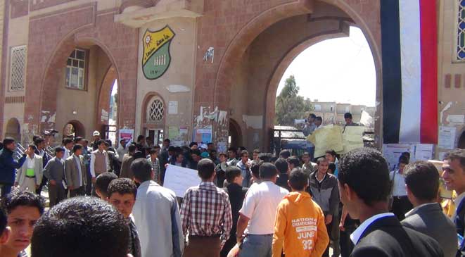 خرجت، اليوم الأحد، مسيرة احتجاجية لطلاب جامعة صنعاء الحكومية في العاصمة اليمنية رفضا لما وصفوه...