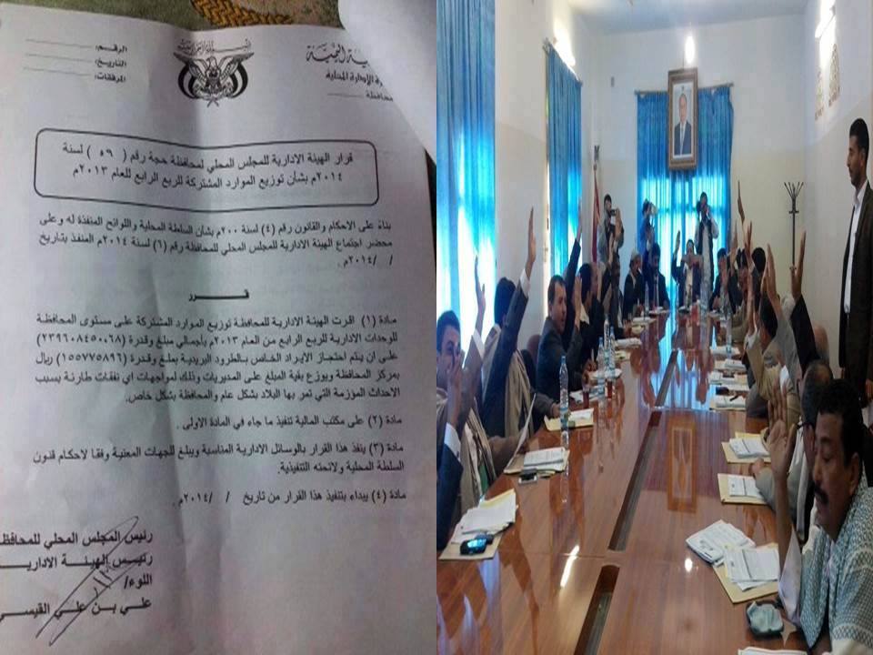 أفادت وثيقة رسمية عن قيام محافظ حجة الشيخ علي القيسي باحتجاز مبلغ 155مليون ريال من الموارد المشتركة المتحصلة على الطرود البريدية بحرض بعد ان كان المبلغ إضافة إلى الموارد...