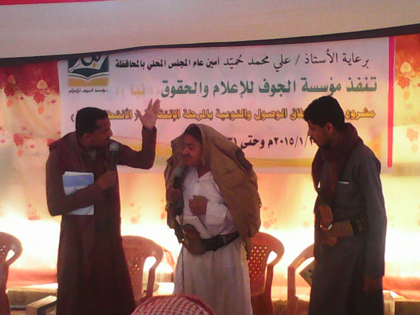 برعايه الاستاذ علي محمد حميد امين عام المجلس المحلي بالجوف نفذت مؤسسة الجوف للاعلام والحقوق "نبا" مشروع نطاق الوصول والتوعية بالمرحلة الانتقالية من الفتره من 2015/1/1م وحتى...