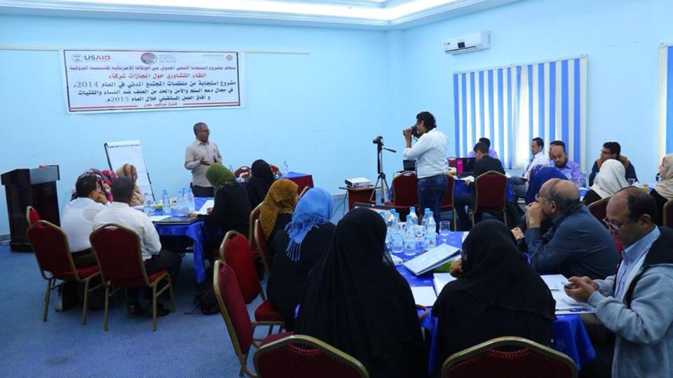 نظمت مشروع استجابة اليمن الممول من الوكالة الأمريكية للتنمية الدولية، اللقاء ألتشاوري حول إنجازات شركاء مشروع استجابة من منظمات المجتمع المدني في العام 2014م، في مجال دعم السلم...