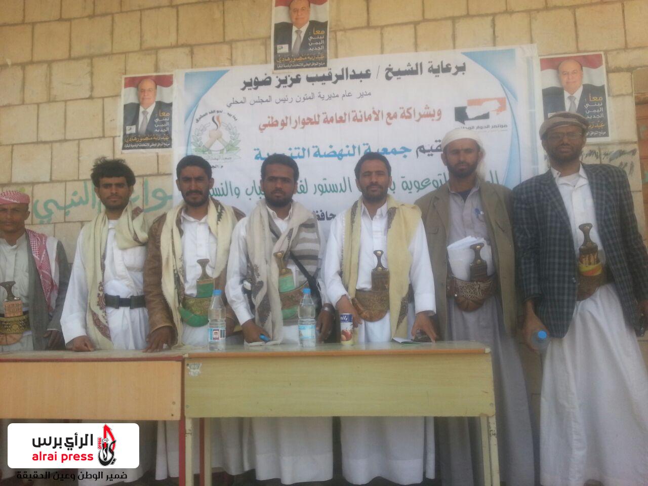 بالشراكه مع الامانه العامة للحوار دشنت جمعية النهضة التنموية اليوم السبت الحفل التدشيني للحملة التوعوية لمساندة الدستور بحضور امين عام المجلس المحلي بمديرية...
