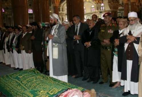 أدى الرئيس اليمني السابق رئيس المؤتمر الشعبي العام علي عبدالله صالح ومعه عدد من المسؤولين وأعضاء مجلسي النواب والشورى والشخصيات الاجتماعية صباح اليوم صلاة الجنازة في جامع الصالح...