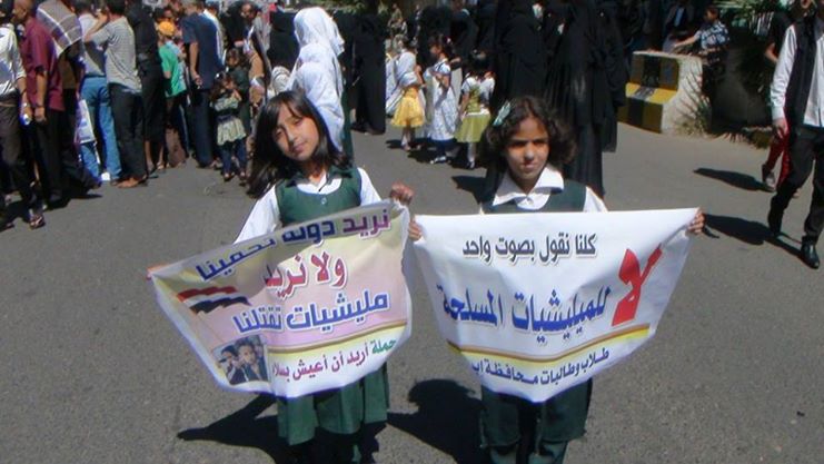 للمطالبة بإخراج المليشيات المسلحة من المحافظة نظم صباح اليوم المئات من طلاب المدارس وجامعة إب والرياضيين وقفة احتجاجية أمام بوابة السلطة المحلية...
