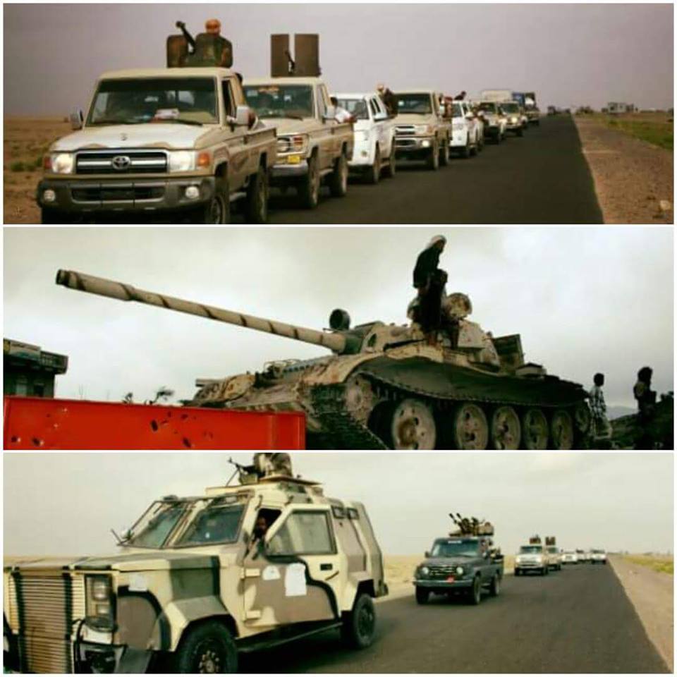 مقطع فيديو يظهر قائد مقاومة تعز الشيخ حمود المخلافي وبرفقته قوة عسكرية كبيرة قادمة من مدينة عدن وتحركت معه باتجاه مدينة تعز لفك الحصار عنها وتحريرها من ميليشيا الحوثي...