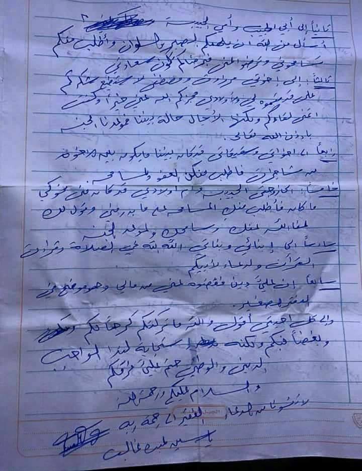 كتب احد الشهداء الذين سقطوا أمس في صفوف المقاومة الشعبية بمدينة تعز وصيته لاهله وذويه قبل موته...