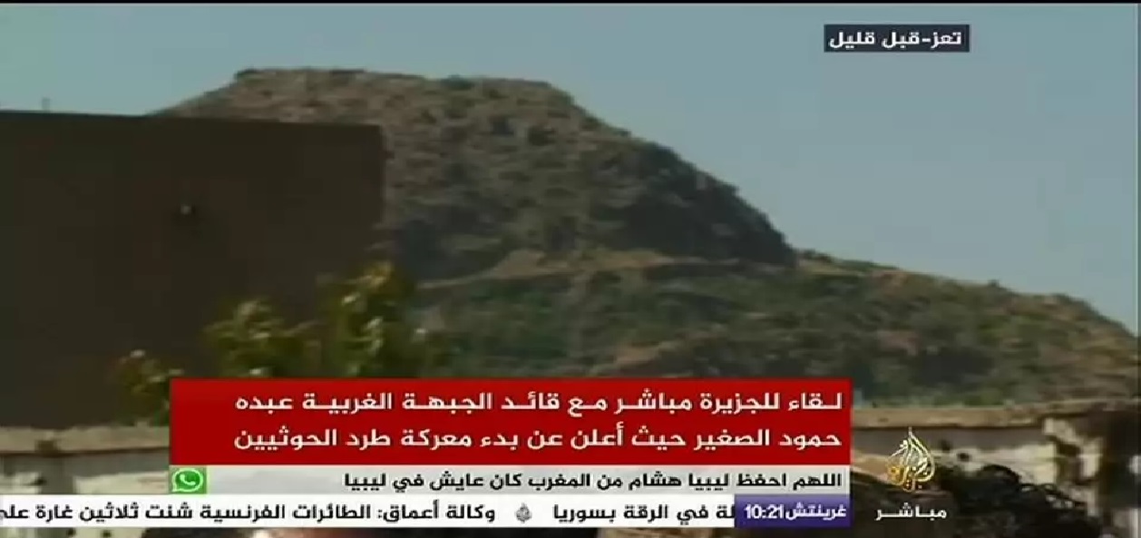 أعلن قائد المقاومة الشعبية الشيخ حمود سعيد المخلافي من أعلى جبل جرة انطلاق ساعة الحسم لتحرير تعز من مليشيا الحوثي والرئيس السابق علي صالح وذلك بالتنسيق مع التحالف العربي بقيادة...