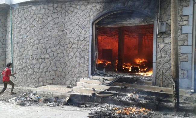 تظهر الصور المبنى التجاري الملوك لرجل الأعمال "جميل الزغروري" وقد التهمته النيران بعد إستهدافه من قبل الميليشيات وحولته إلى بقايا...