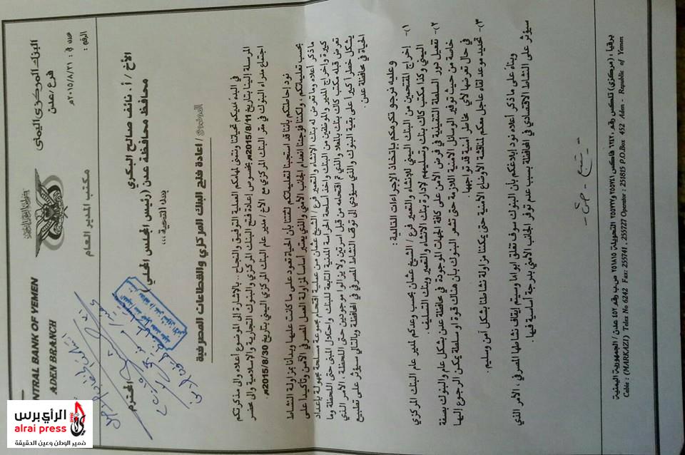 تعرّض فرع البنك اليمني للإنشاء والتعمير بمنطقة الشيخ عثمان بمحافظة عدن للإقتحام من قِبل مجموعة مسلحة تُقدّربحوالي...