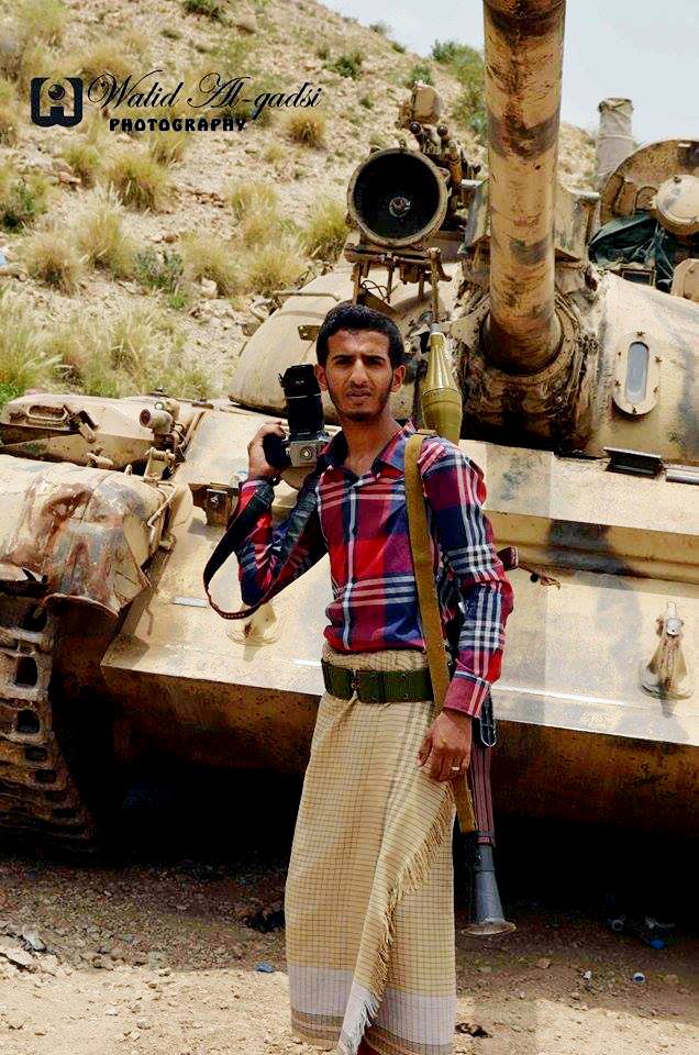 الصورة التي كتب عليها العبسي "صورني أنا والغنيمة" بأنها تؤكد الإنتصارات المتتالية للمقاومة الشعبية في مدينة تعز وحقيقة دحر الميليشيات وقرب موعد إعلان المدينة خالية من...