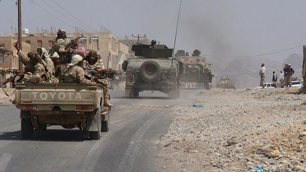 تشرف قيادات من الجيش اليمني على الاستعدادات الجارية للزحف نحو عدن ولحج وتعز لتحريرها من ميليشيا الحوثيين وأتباع الرئيس اليمني السابق/ علي عبد الله...