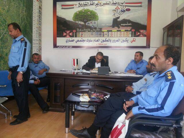 وقف اجتماع لإدارة المرور بإب ، امام العديد من القضايا المرورية بمدينة إب .