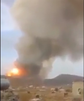 اغار طيران التحالف اليوم الجمعة 17 أبريل 2015م على معسر الحفا بأمانة العاصفة مستهدفا مخزنا...