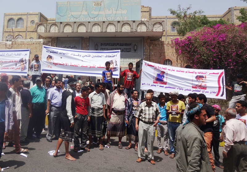 نفذ العشرات من أبناء محافظة تعز اليوم وقفة احتجاجية أمام مبنى ديوان عام المحافظة وذلك للتنديد بجريمة اختطاف الطفلين فؤاد وفتحي احمد عبدالواحد المطهر واللذين تم اختطافهما من أمام...